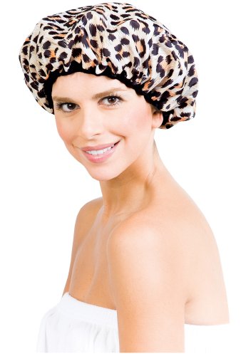 The Betty Dain Socialite Collection of Stylish Shower Caps shown here in the pattern "Safari Spots" offers a waterproof and mold resistant nylon shower cap with a plush terry lining that is oversized to fit thick or long hair. Additional pattern "Puppy Love" available separately.