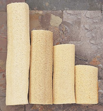 This Central American sponge (also known as Maya Loofah) more closely resembles the Middle Eastern (Egyptian) sponge, which is less tightly woven, less rigid, lighter and requires a shorter break in period than the Eastern variety. Many consider it to be "softer", although some have claimed it to be more abrasive in some cases. Regardless, it is still a great sponge that can be used immediately for exfoliating, massaging and cleaning. (Pros: Immediate use, softer, dries quicker. / Cons: Not as rigid, softer, wears out quicker.)