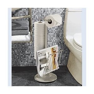 Better Living Products is a world leading designer, manufacturer and marketer of innovative, quality bath and shower organization products. Key to innovation is the simplicity of installation. All of our products are designed to be installed with out the use of tools. No need to drill into tile, acrylic or glass. Using innovative installation methods, our products can be mounted in areas that you either don't want to damage or never thought were possible to use for storage space. The Toilet Caddy is the ultimate toilet tissue dispenser and tissue strorage organizer with a handy magazine rack. The caddy holds three extra toilet tissue rolls, has a spacious magazine rack and is a attractive, elegant design. It has a heavy base for strong support and stability. It is made of high quality plated steel and is easy to assemble and no tools are required.