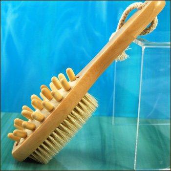 Research says that poor circulation is a large culprit in our cellulite battle. We haven't exactly found a cure, but we have found the perfect spa bath accessory to help get the circulation going and stimulate the skin to allow for new cell growth. Natural Boar bristles on one side and massage nubs on the other side together help lessen the appearance of cellulite and create great soap lather. Simply rub in a circular motion daily to increase cellular and skin circulation helpful in cellulite prone areas. Massage nubs also comfort tired, tense muscles after that exhausting workout! The brush and handle measure 8 1/2" long and 2 1/2" wide. The bristle portion runs 4" down the brush. The wood is lightweight and the size is perfect for daily use to reduce or for the removal of cellulite.